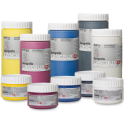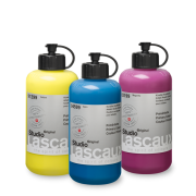 Hochkonzentrierte und leuchtende Farben für den lösemittelfreien, wasserbasierten Siebdruck. Gelb, Magenta, Cyan, Schwarz und Weiss mit optimalen Mischeigenschaften.
