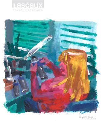 In 2008, the Swiss illustrator and artist Yves Nussbaum (Noyau) captured the Lascaux working day on site in his expressive pictures painted with gouache colours. These have not lost their relevance to this day, as the quality of our manufacturing processes has not changed since then. These expressive illustrations accompany this series on Lascaux, in which we explain our values, our philosophy, and our work.